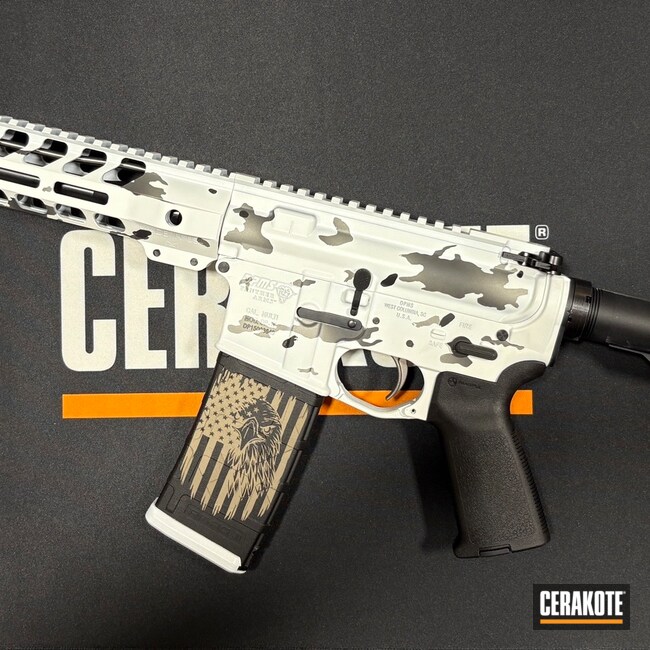 Multi Camo Stencil AR-15 Cerakoted in Armor Black, Storm Trooper White, Sniper Grey and Satin Mag