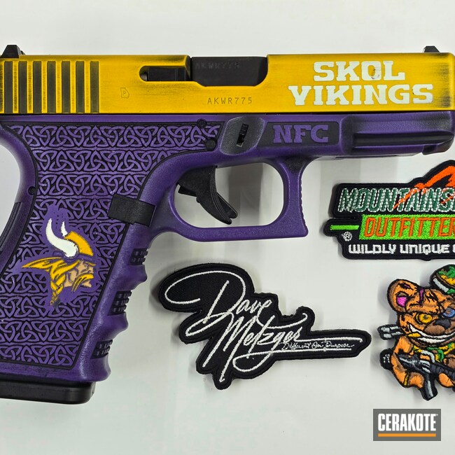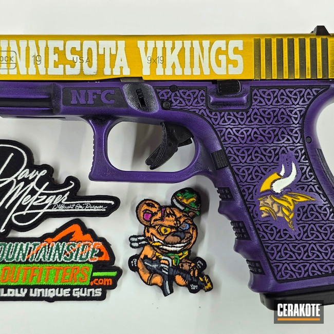 Laser Engrave Bright White H-140 Graphite Black H-146 Glock NFL Corvette Yellow H-144 Stencil Vikings Glock 19 Bright Purple H-217 Laser Engraved Custom