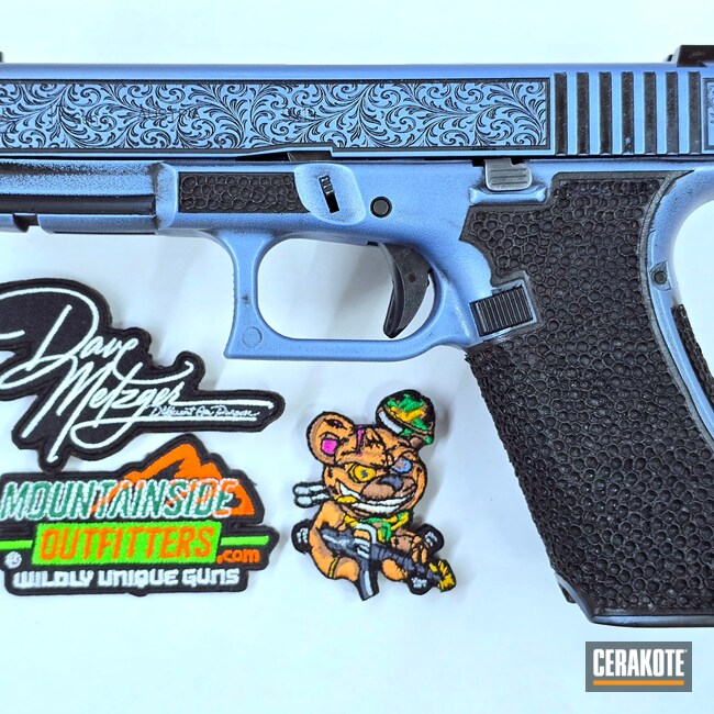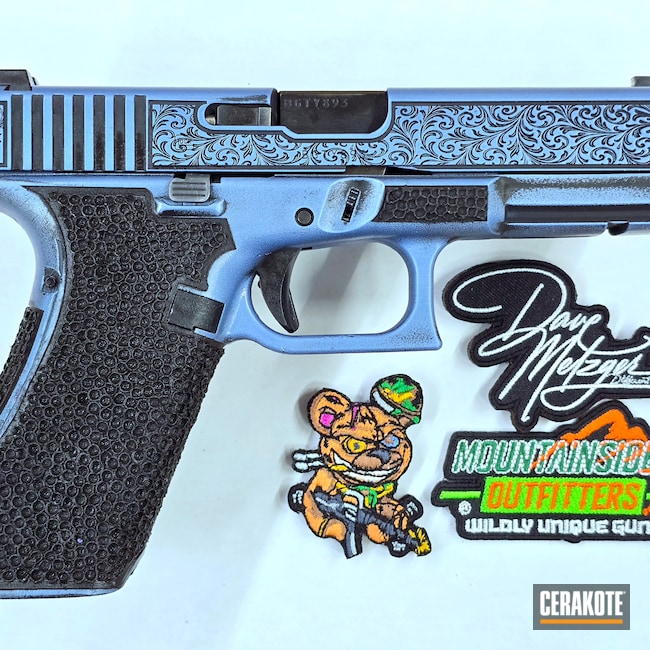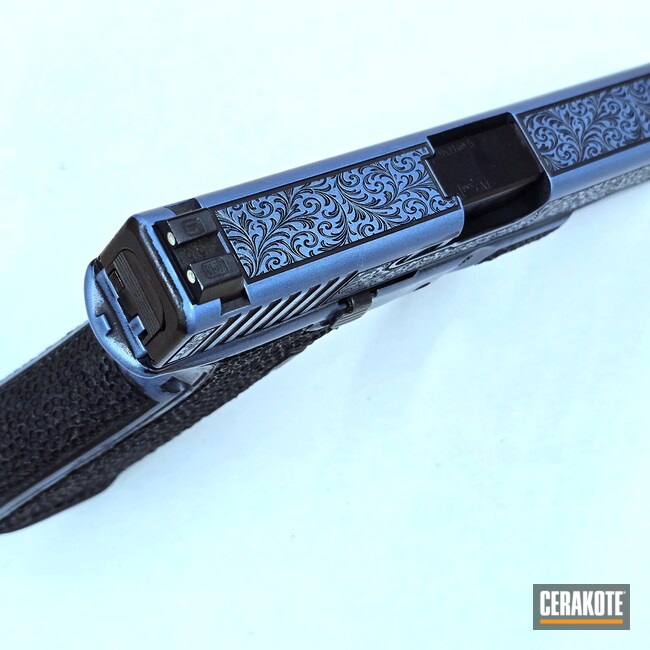 Laser Engrave Graphite Black H-146 Glock Glock 17 Gen 5 POLAR BLUE H-326 Glock 17 Laser Engraved Hand Stippled Custom