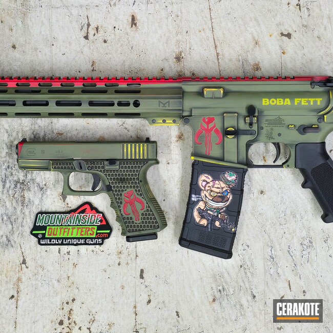 Laser Engrave Corvette Yellow H-144 Star Wars Theme Boba Fett Theme O.D. Green H-236 AR-15 Star Wars Boba Fett Laser Engraved Custom Graphite Black H-146 Glock Glock 19 USMC Red H-167