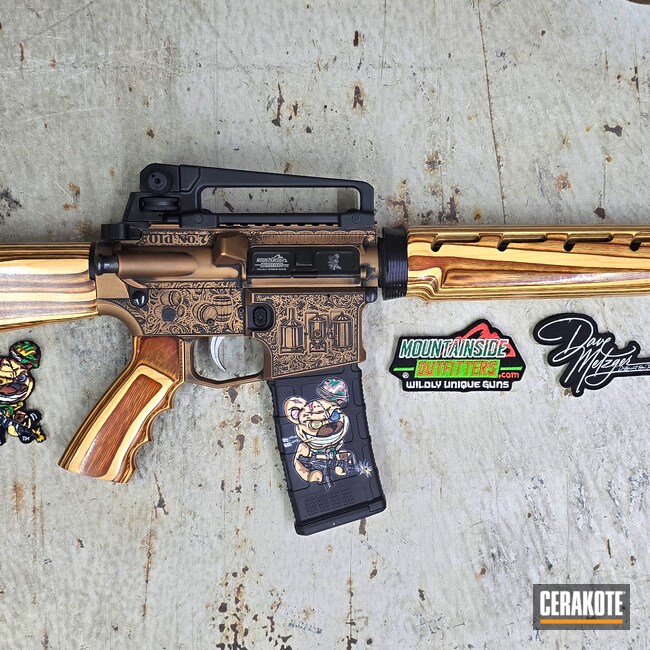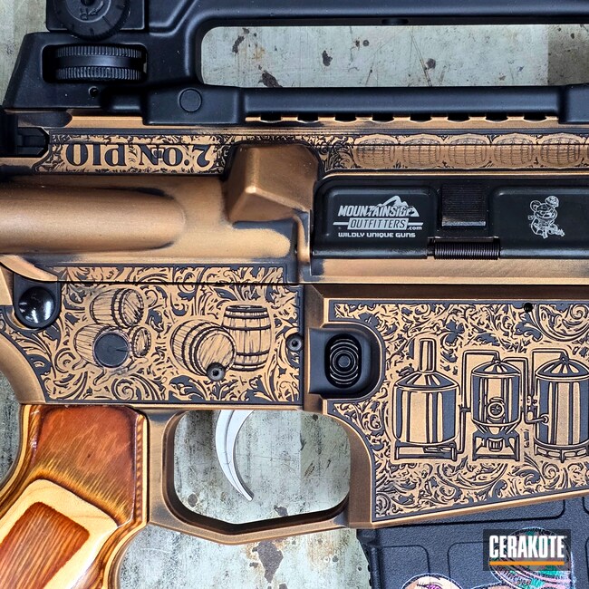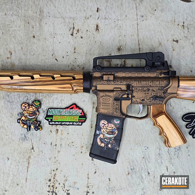 Laser Engrave Woodgrain Graphite Black H-146 Wood Reaper AR-15 Burnt Bronze H-148 Whiskey Laser Engraved Custom