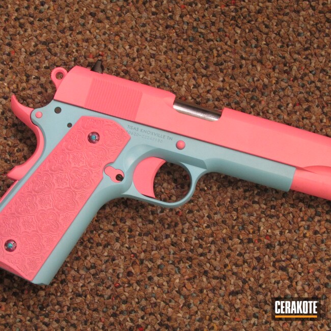 Home CERAKOTE® Gallery Barbie 1911 done in Pink Sherbet and Blue Raspberry Print