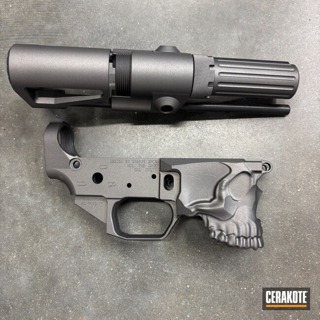 One Color Custom Lower Receiver Skulls Cerakote Gun Coatings AR Lower Receiver Tungsten H-237 AR-15 Guns Gun Parts Upper / Lower Gun Coatings Custom Cerakote No More Rust Skull and Crossbones Cerakote Sharps Brothers Multi cal More Than Guns Custom Lower Buttstock Receiver Cerakote That S**t Sharpbros Lower Receiver Small Parts Skull