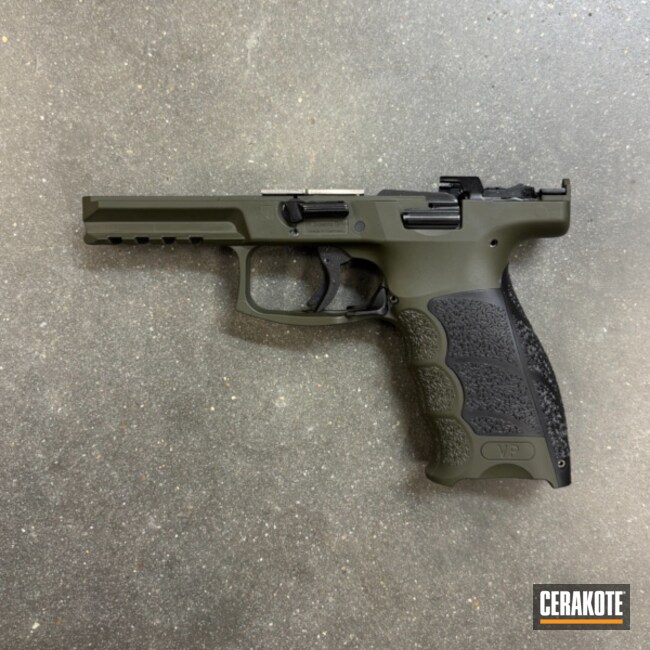 Custom Pistol Frames VP9 Tactical Custom Handgun Guns Gun Coatings Custom Cerakote No More Rust Handguns Pistol Frame Handgun Pistols Two Color Firearm Frame Cerakote Carbon Black F-102 Vp9sk O.D. Green H-236 Multi cal VP9 More Than Guns Custom Cerakote That S**t Pistol Handgun Frame Firearms H&K VP9 Tactical HKVP9