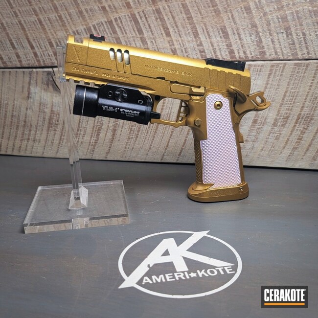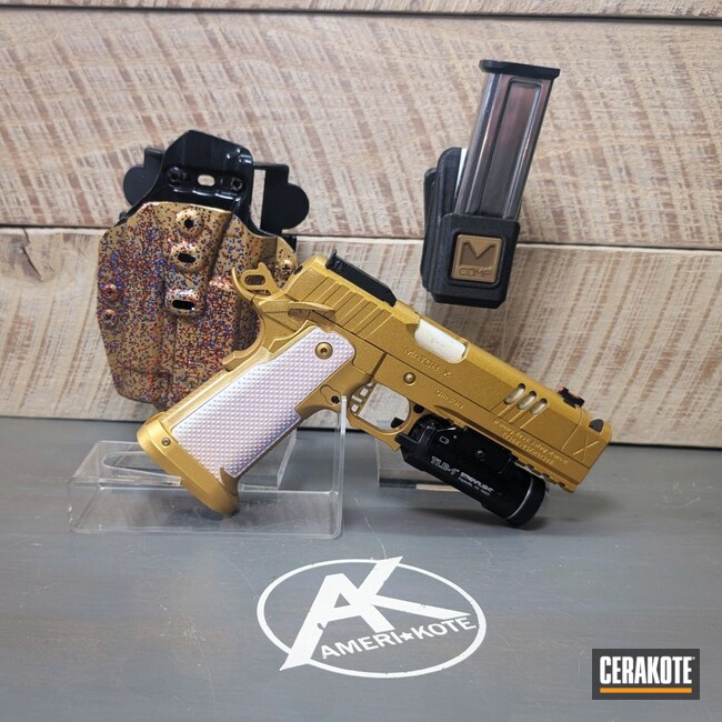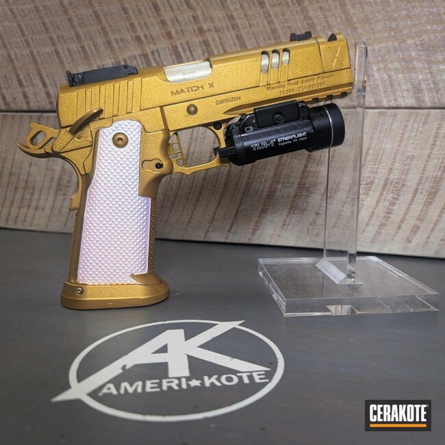 Bright White H-140 Cerakote FX GOLD FX-113 Handguns Custom Pistol Cerakote FX Colorshift Pearl Gold H-122 Handgun Custom Handgun Custom 1911 Custom Finish