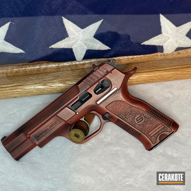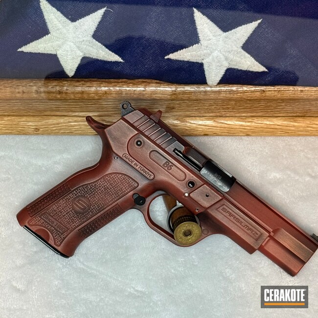 The customer wanted to do a distinct battle worn pistol with a slight metallic hue to it.