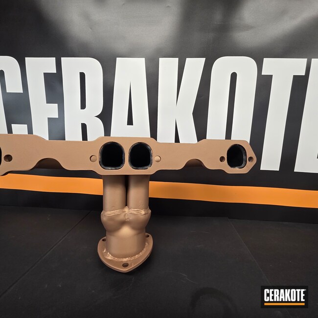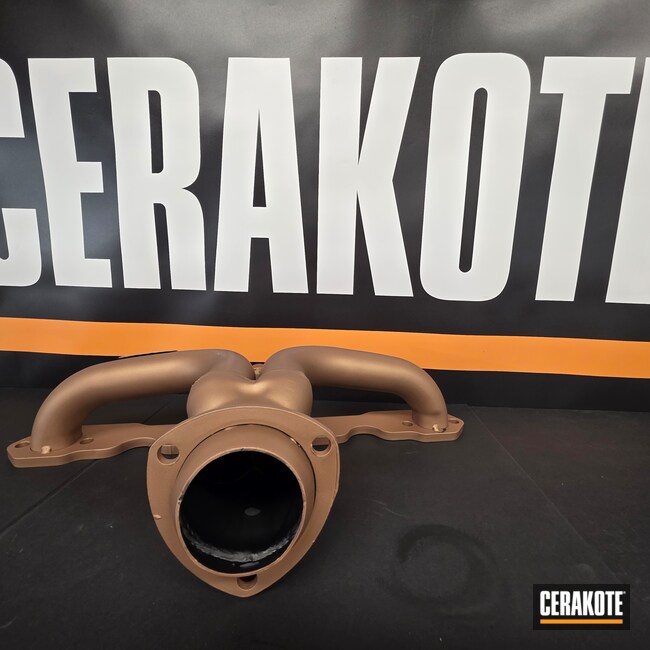 Custom jeep had to much heat coming off the headers, and the heat kept melting wires. We used Cerakote Glacier Series Black on the inside and V-Series Titanium Red Piston Coat outside.