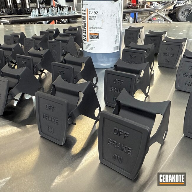 Caster brake mechanisms coated in Cerakote's C-192 ARMOR BLACK!