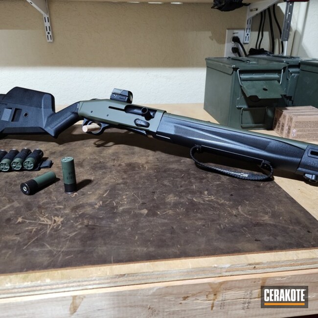 Cerakoted Antiqued Shotgun In H-190, H-309, H-317, H-342, H-30118, H-346 And H-347